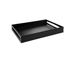 Stilvolles Tablett aus der Arinto-Kollektion. Das Tablett ist mit einem matten goldenen Rand und Griffen ausgestattet und hat einen Durchmesser von 37 Zentimetern. Die Oberfläche besteht aus Glas.